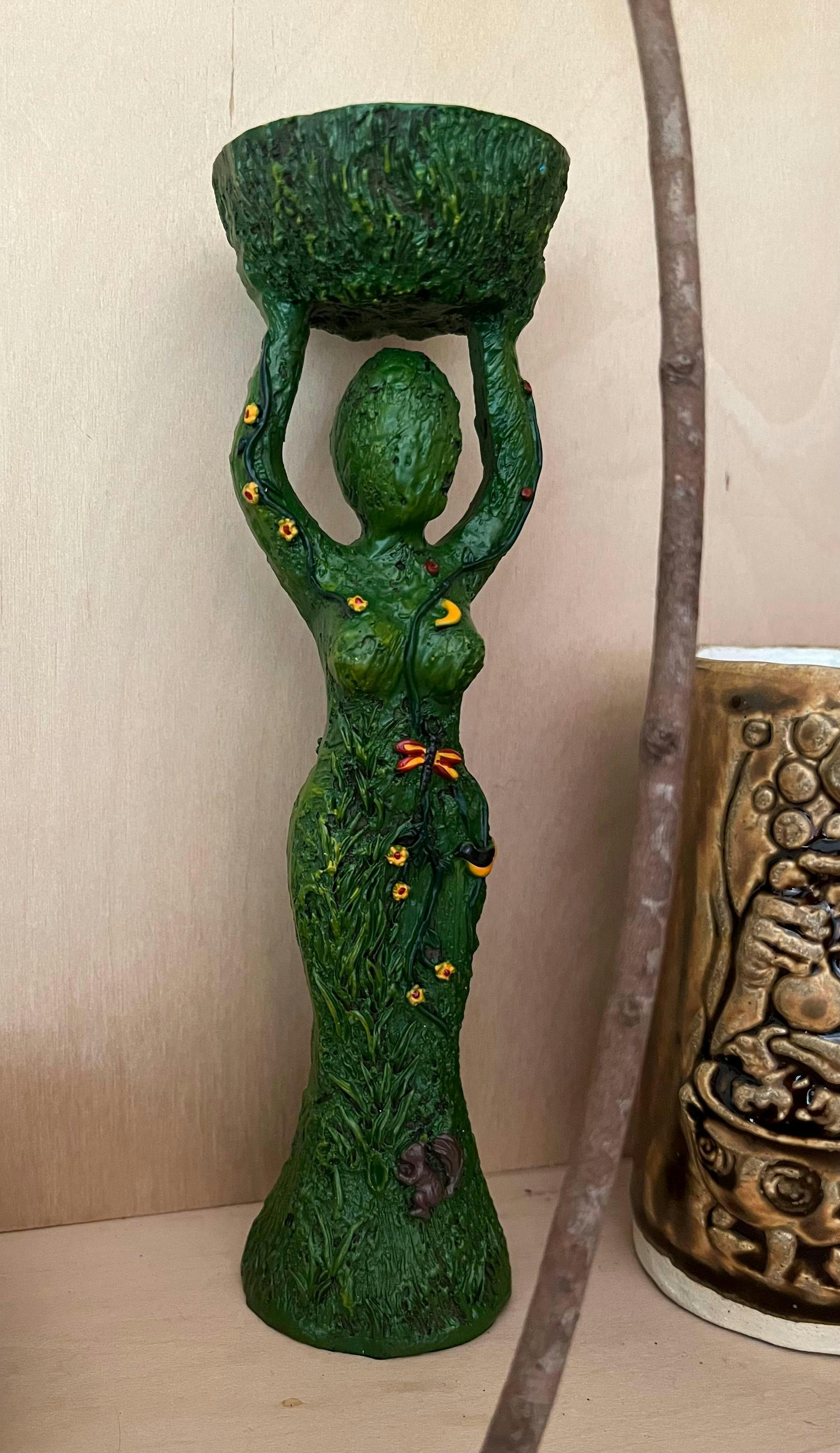 Gaia Goddess Candle Holder: Polyresin Altar Decoration