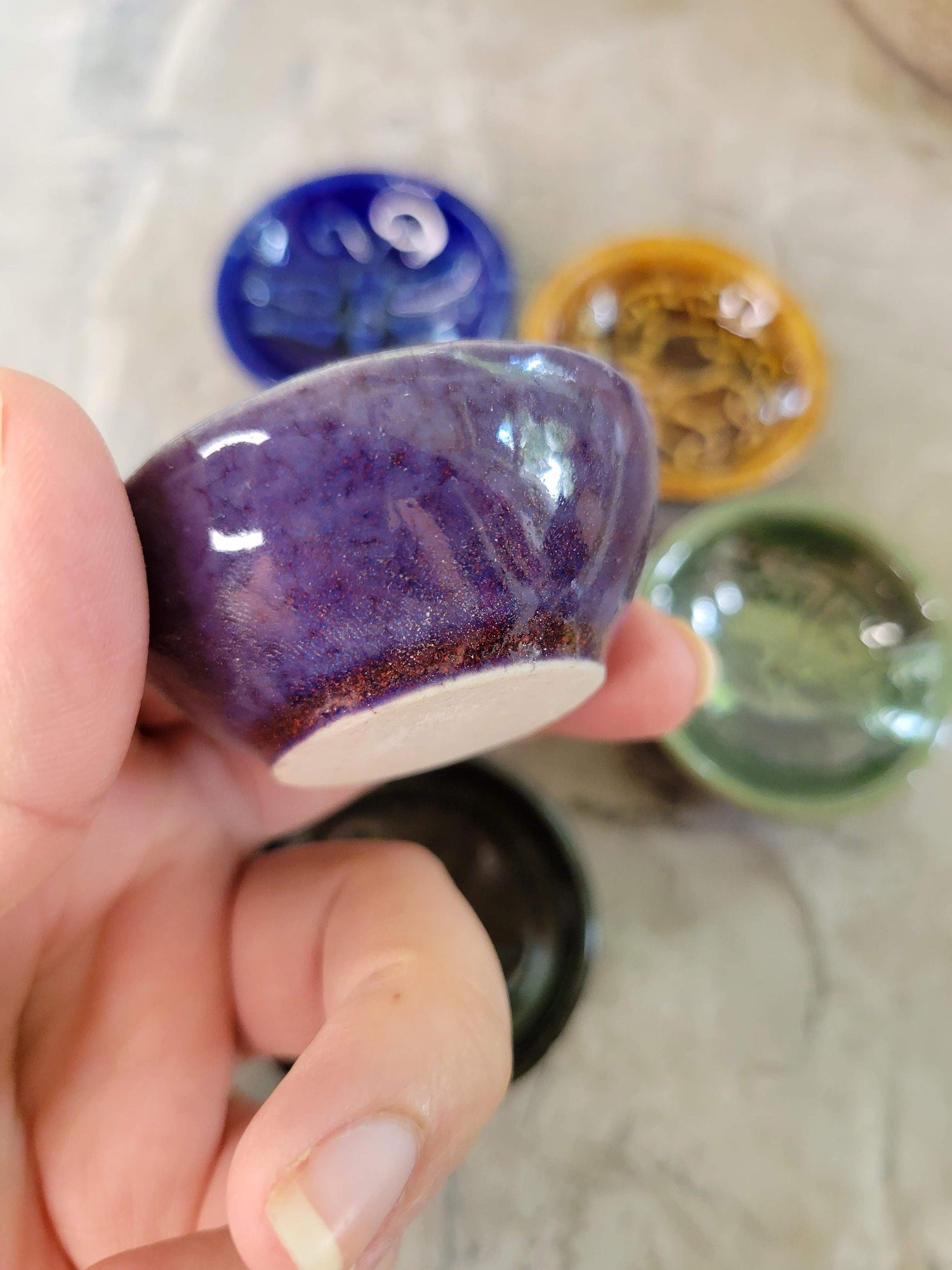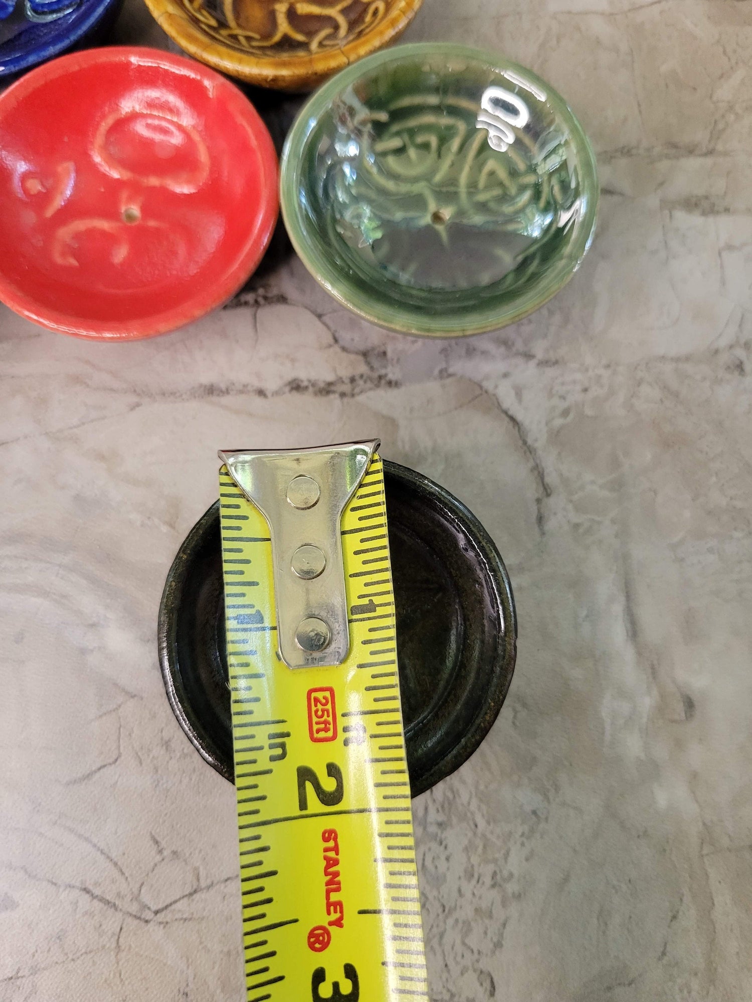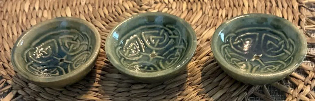 Handmade ceramic incense burner bowls embossed assorted designs, incense cones holder