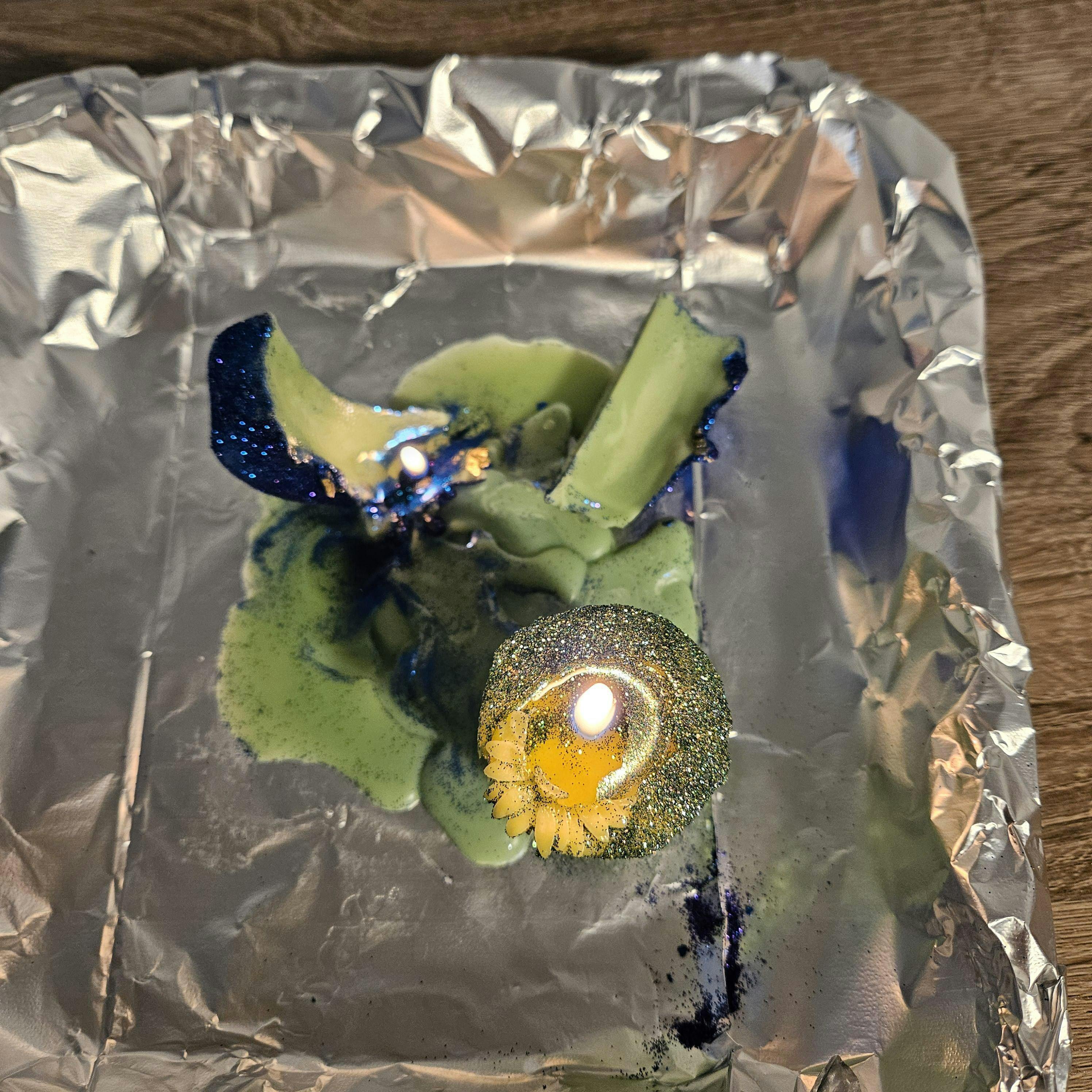 Illuminate your space with the enchanting glow of our hand-poured Moon and Sun Candle, infused with pyrite crystal chips. Each candle is meticulously crafted to bring warmth and positive energy into your home. The pyrite crystal chips embedded within add a touch of sparkle and are known for their protective and energizing properties. Choose your preferred color to match your décor or mood, and let the harmonious design of the moon and sun bring a sense of balance and tranquility to your surroundings. Perfect for meditation, relaxation, or as a thoughtful gift.