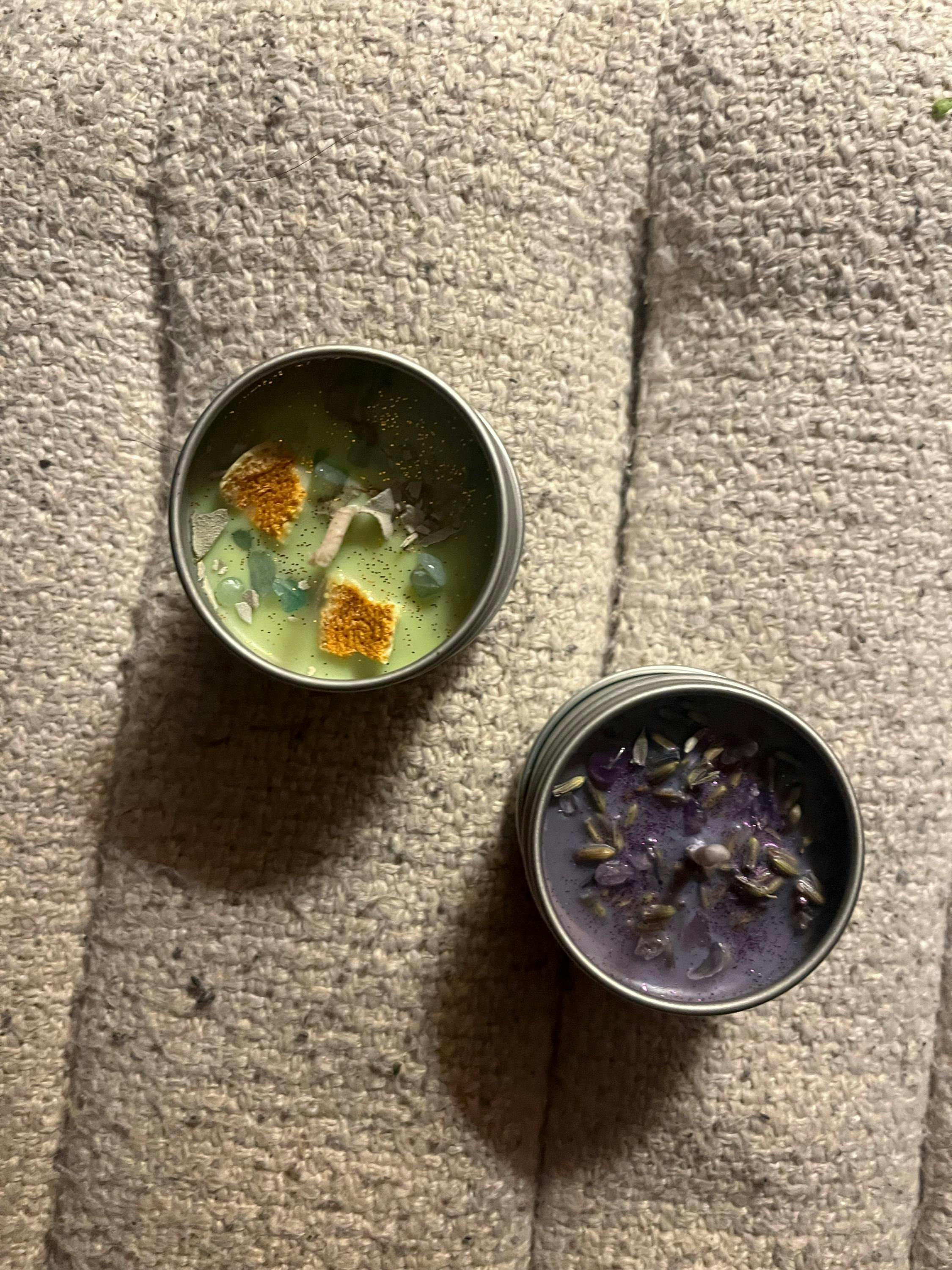 Handmade Soy Intention Candle: Crystal & Flower Infused, 2oz Sample