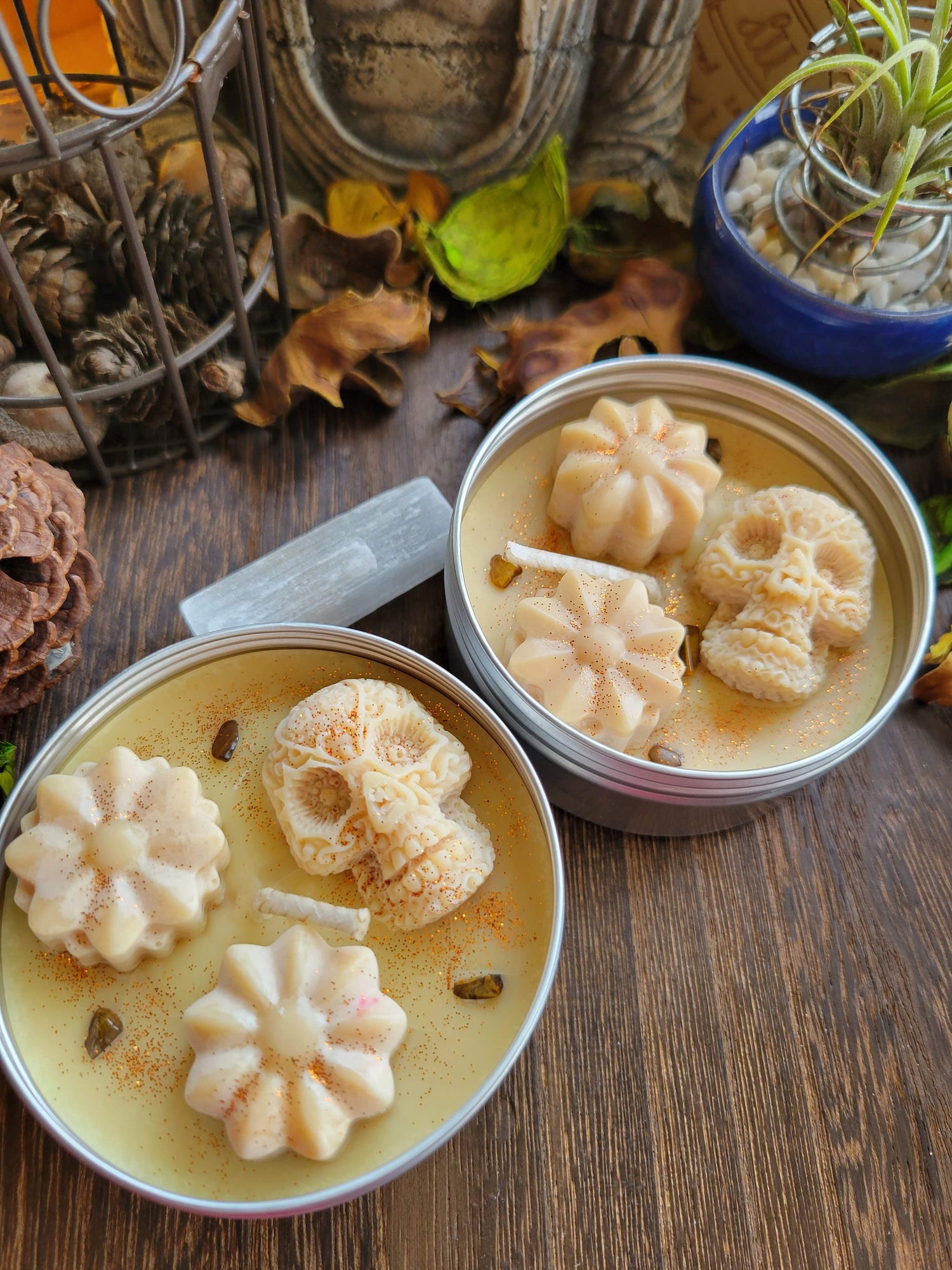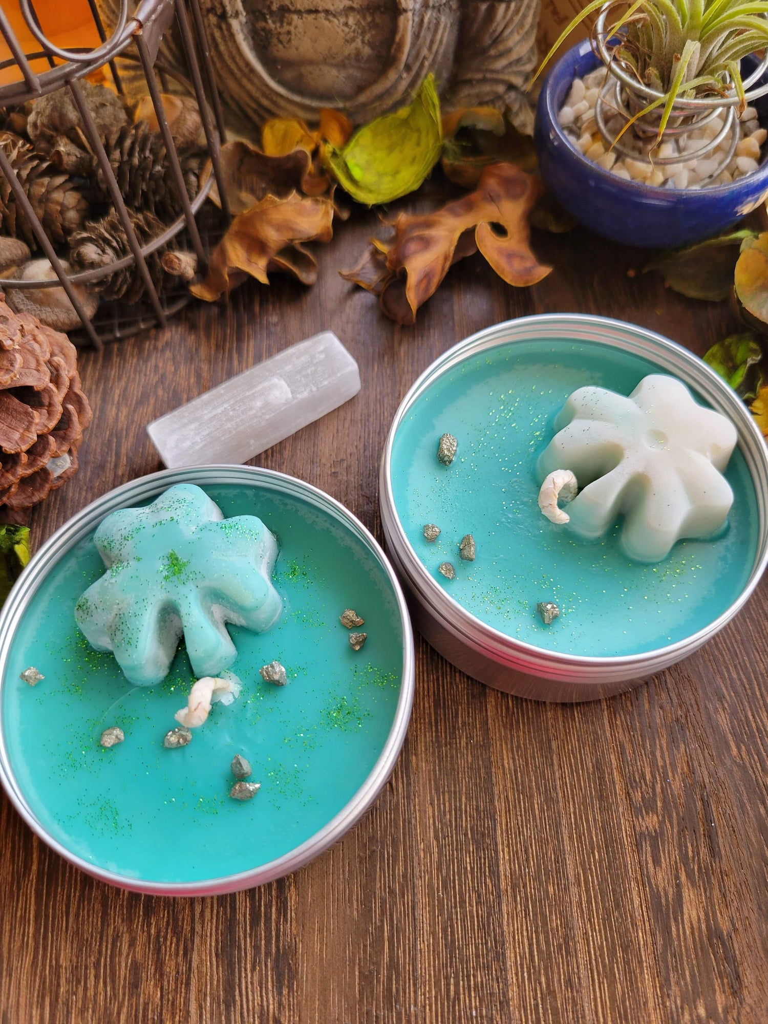 Our Beautiful Handmade candles, each one is made with organic soy wax, crystals, essential oils, magic, and a lot of positive energy.