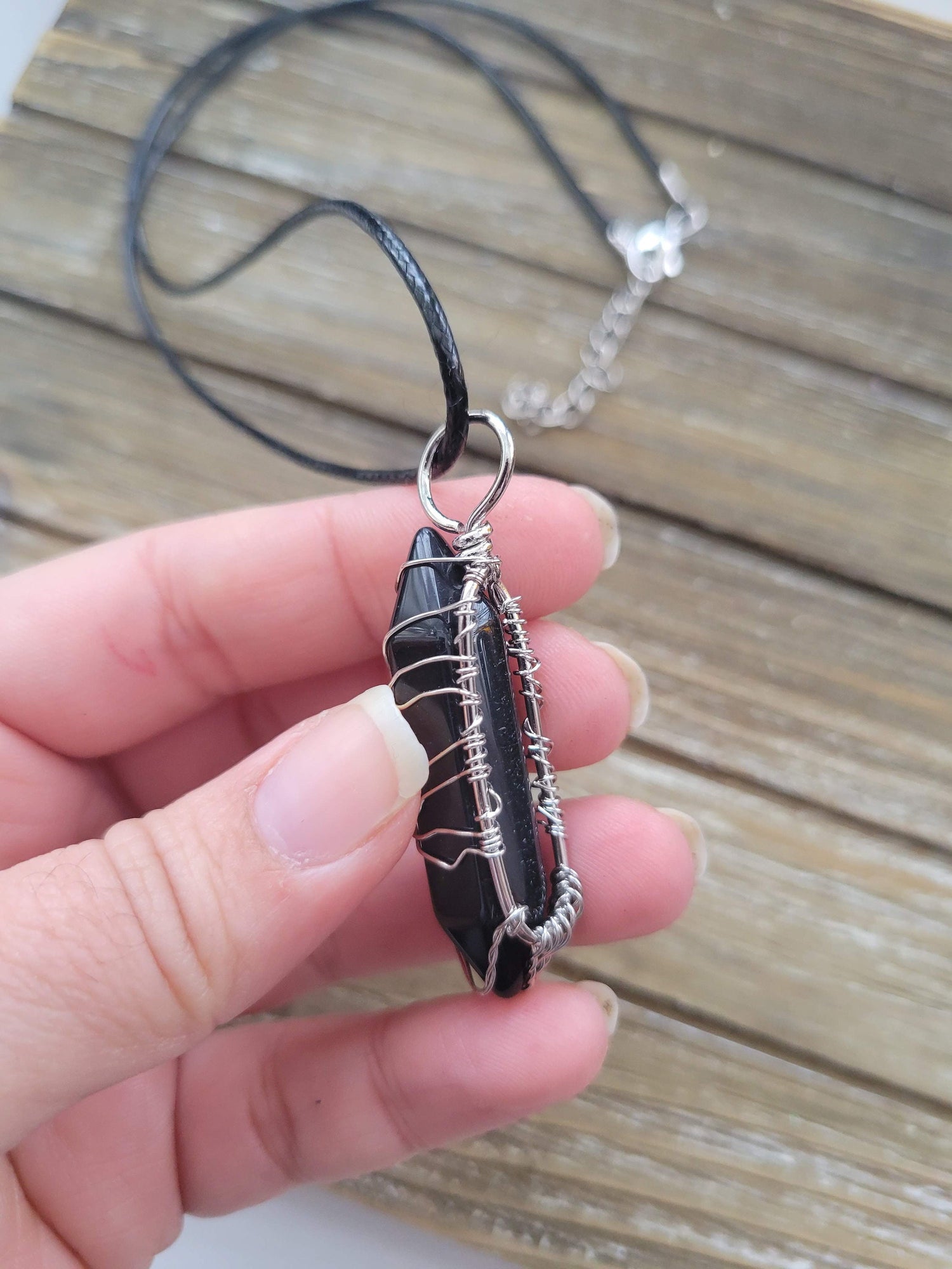 This listing is for 1 Black Agate Wire Wrapped Pendant.