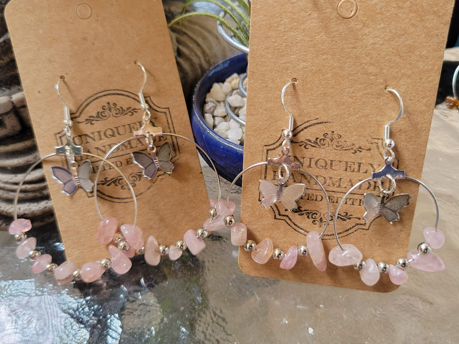 Bohemian Crystal Hoop Earrings: Butterfly Stone Jewelry - 1.2 / Rose Quartz Silver is backordered and will ship as soon as it is back in stock.