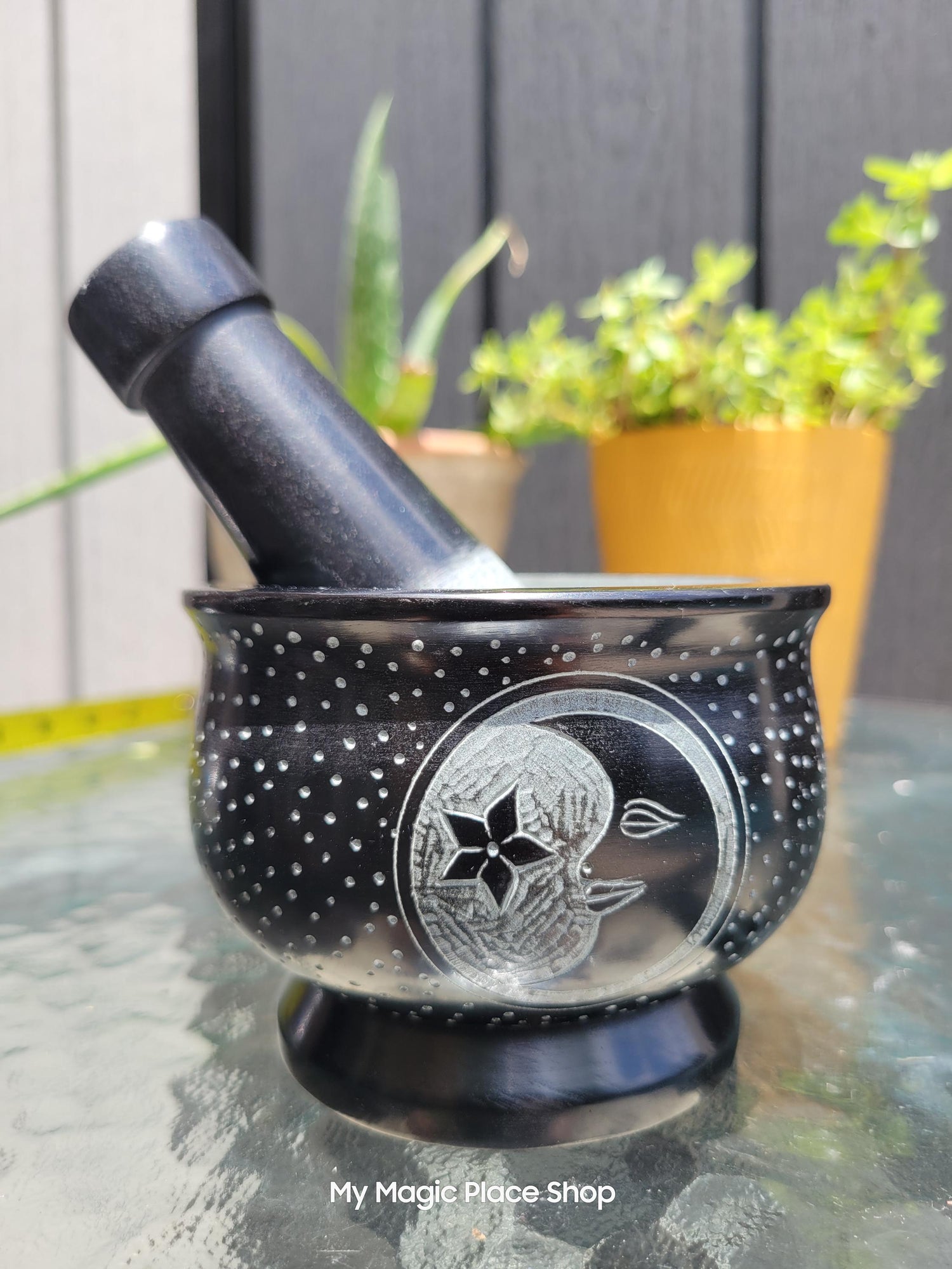 Moon Black Mortar and Pestle, Soapstone Herb Grinder Handmade Mortar
