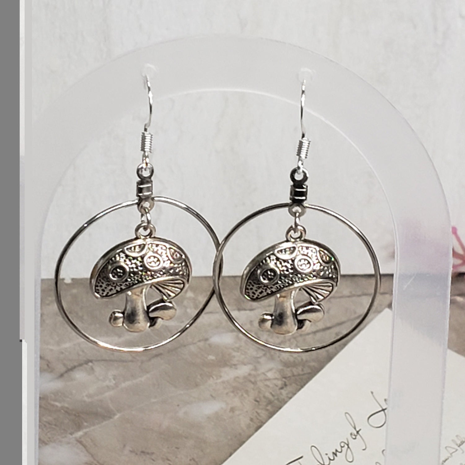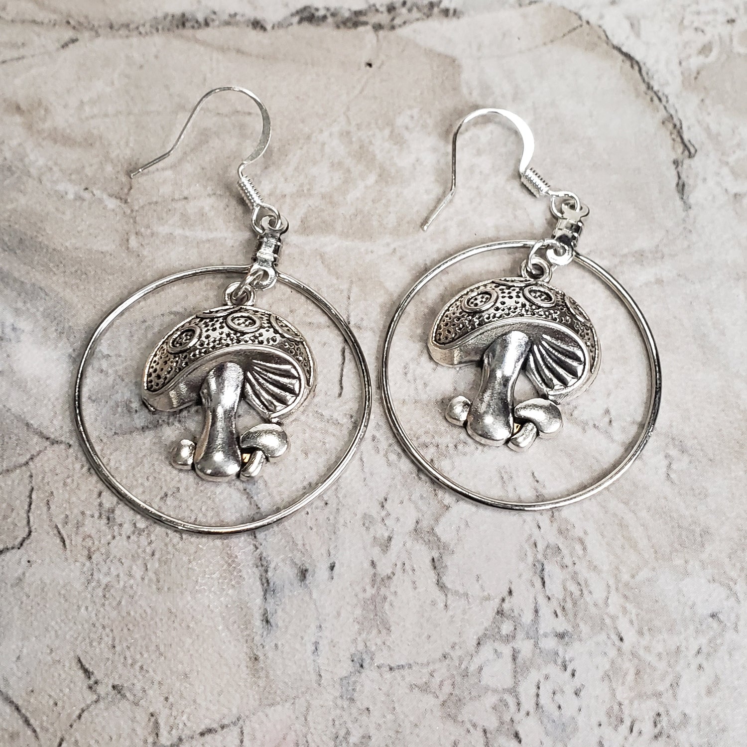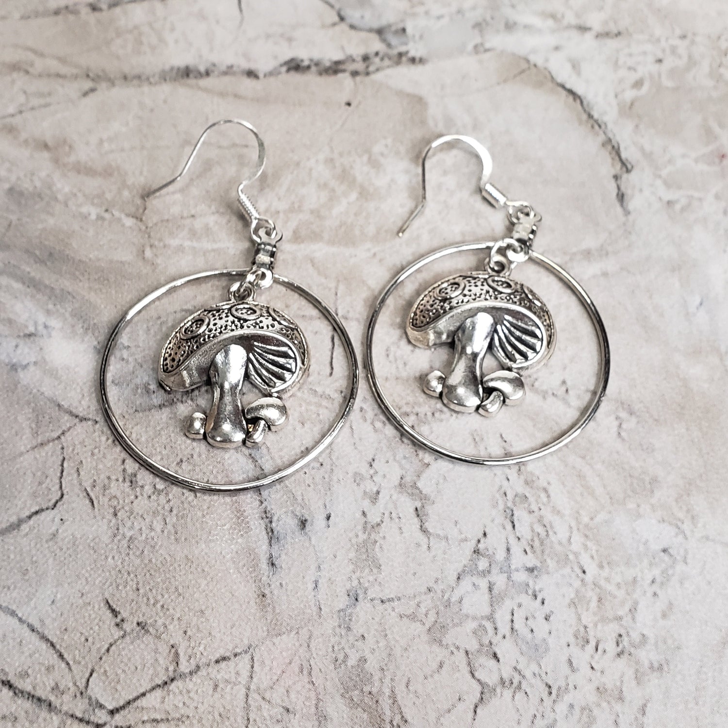 Mushroom Hoop Earrings: Silver Plant Earrings