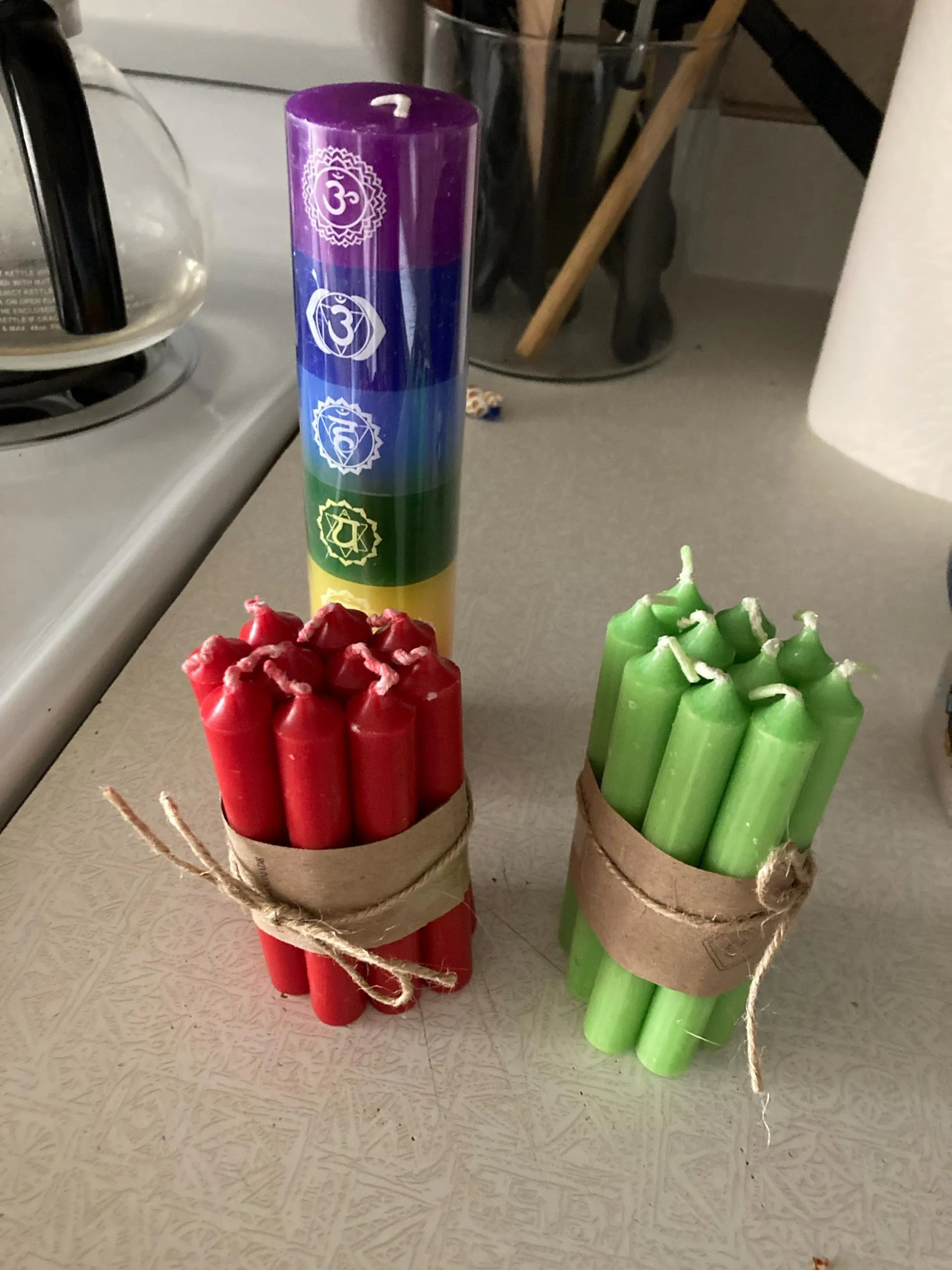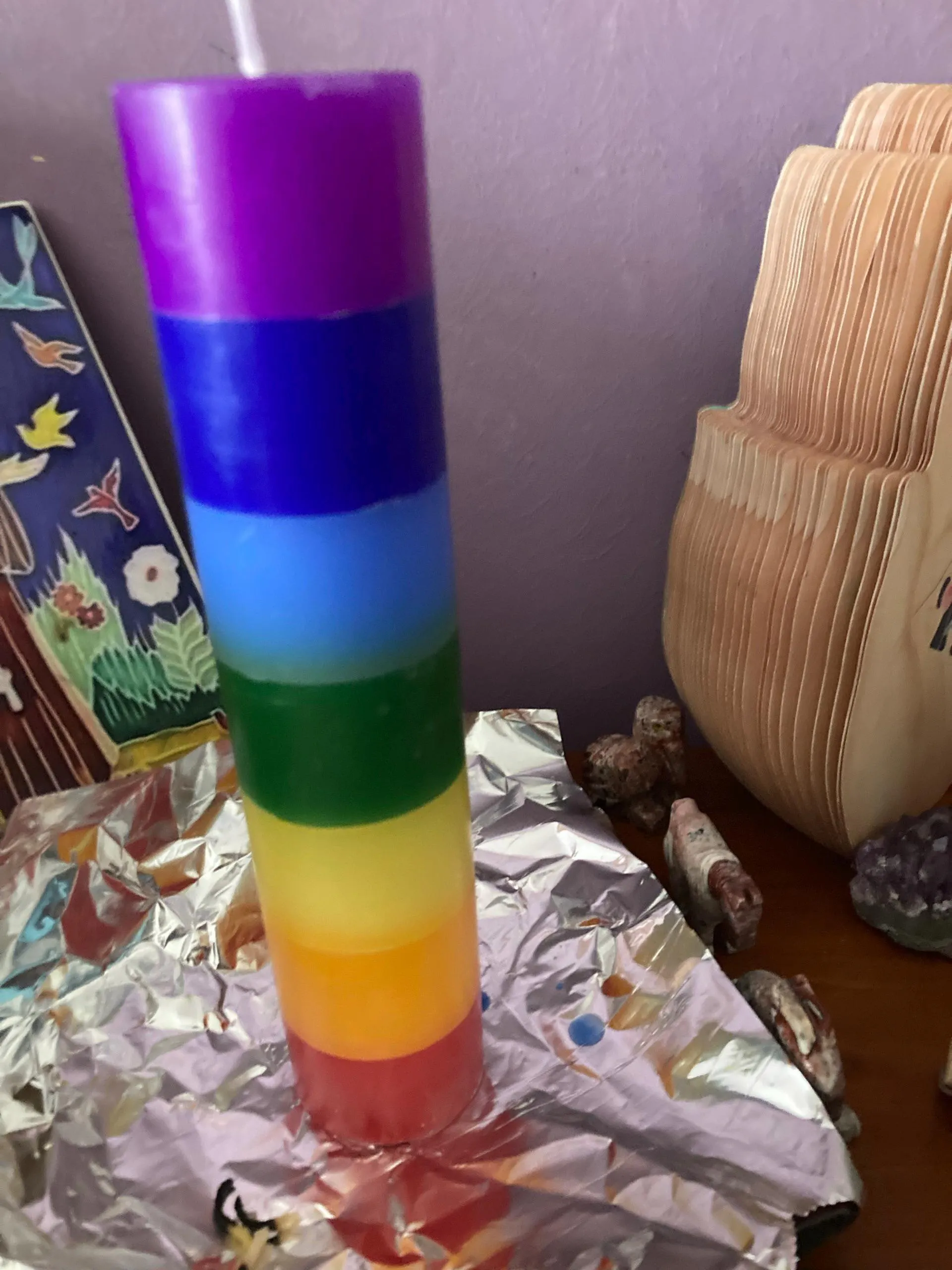 Handmade Seven Chakras Layered Candle: Unscented Meditation Candle